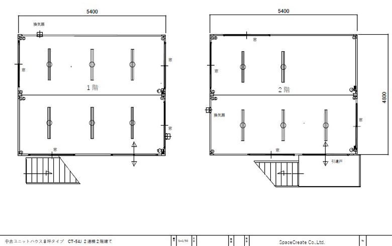 > レンタル ユニットハウス8坪2階建てタイプ