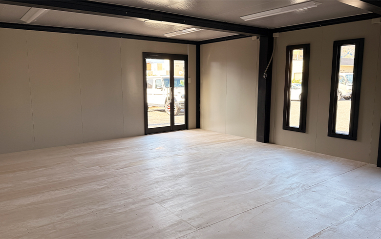 2025.12.13 アウトレットユニットハウス11.3坪(22.6畳)タイプを、精肉販売所として設置しました。