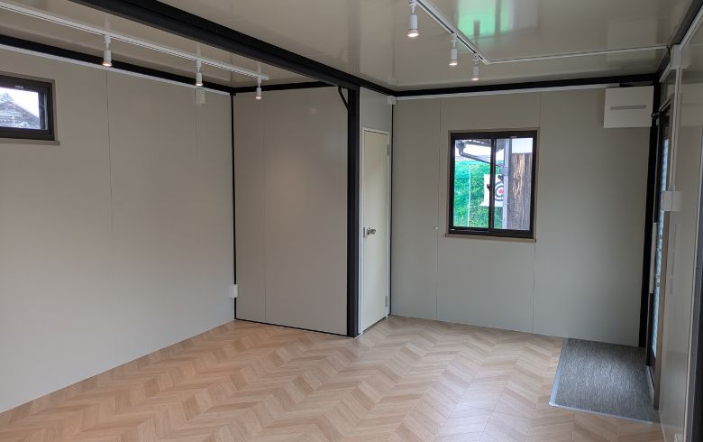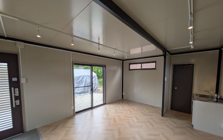 2026.4.17 組立式パネルハウス5.9坪(11.8畳)タイプを、来客室・趣味部屋として設置しました。